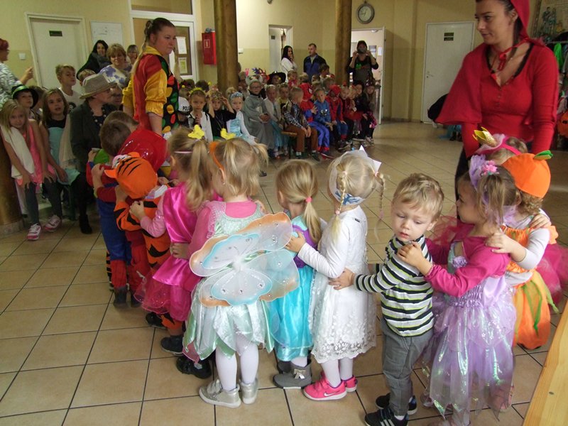 Najpierw oglądaliśmy prezentacje przedszkolaków w barwnych przebraniach oraz uczniów klas I - III w kolorowych korowodach. Były pląsy przy muzyce w odpowiednich układach tanecznych. Animacją poszczególnych oddziałów zajęli się wychowawcy.