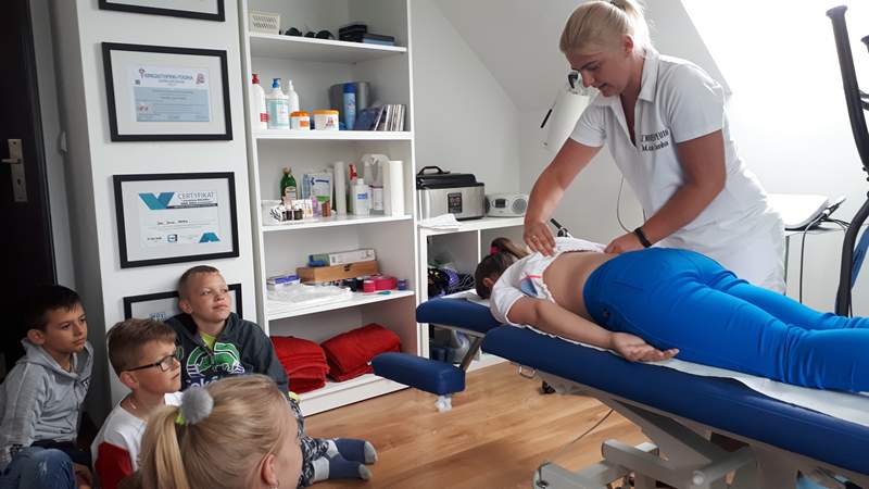 W dniu 10 czerwca 2019 r. klasa IVb wybrała się z wizytą do jednej z naszych klasowych "mam", która na codzień zajmuje się fizjoterapią i rehabilitacją swoich pacjentów.